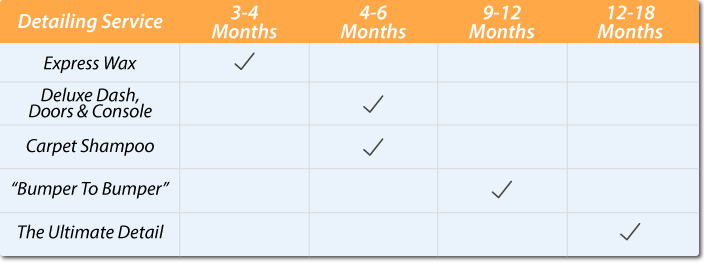 Recommended Detailing Schedule for Regularly & Professionally Washed Vehicles